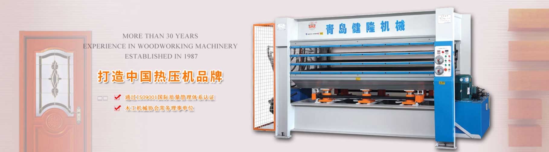 青岛健隆机械有限公司是青岛木工机械协会常务会员单位,木工热压机通过CE国家认证,有30多年非标制作多层热压机经验,健隆机械是盼盼木门、美心木门的热压机提供商,公司拥有一支具有几十年设计和装配生产经验的专业团队,生产制造的热压机,锁孔机,剪切机,涂胶机,磨刀机,细木工板拼板机,砂光机等系列产品,质量稳定,售后服务及时,一直深受广大客户的好评。被中国林业机械协会评为十大驰名品牌产品。自主研发的MXZ1560系列锁孔机,适用各种木门门锁安装。