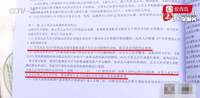 行动员看到,合同上只显示了装修项,并提供了参考的同档次品牌,但具体使用什么品牌和价位并没有明确约束。而且,在合同的第十一条有关于商品房质量的补充约定:买受人认为交付的商品房装饰装修设备不符合合同附件约定的,按合同约定处理,出现这种情况,买受人承诺不以此为由拒绝办理交付手续、要求解除合同或向出卖人提出其他索赔要求。