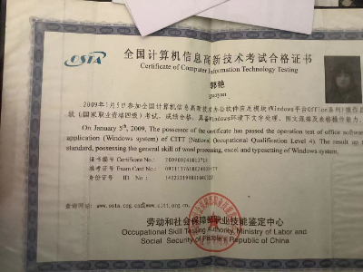 2010-4OSTA证书