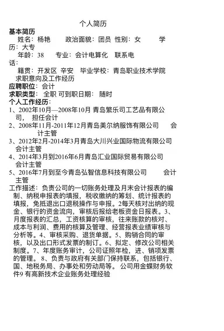 投诉简历