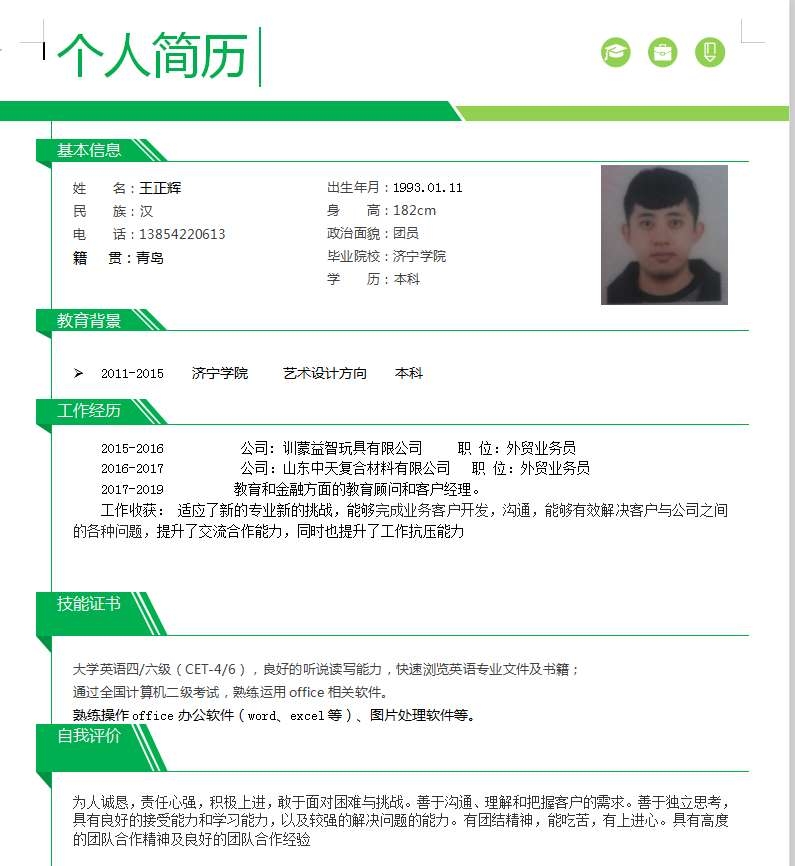 导出Word简历